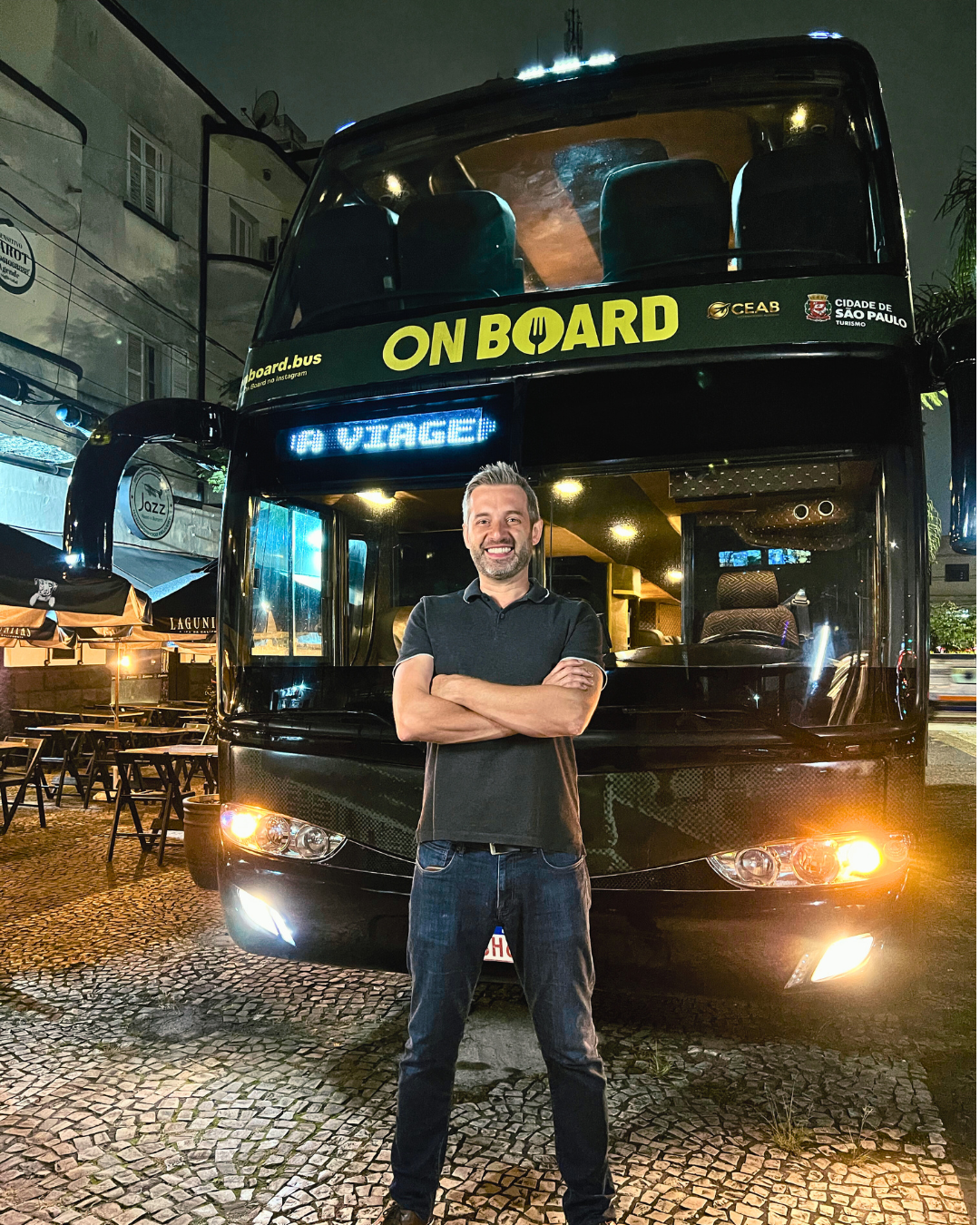 André Berti: A inspiração veio de uma viagem a Paris, onde passeei em um barco-restaurante que navega pelo rio Sena e passa pelos principais pontos turísticos da cidade. Ao voltar para a casa, pensei em fazer algo semelhante no Brasil. Durante algum tempo, esperei pela limpeza dos rios Tietê ou Pinheiros, mas, cansado da espera, percebi que poderia criar algo diferente. Em Nova York, em outra viagem, vi os famosos ônibus vermelhos que percorrem a cidade, e foi então que tive a ideia de combinar um restaurante com um ônibus turístico.