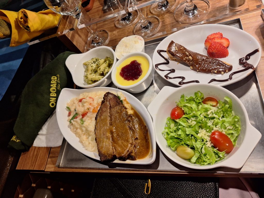Berti: A gastronomia do Onboard Bus é responsabilidade do Jazz Restaurante, localizado na Vila Mariana. Fundado por mim, o restaurante foi uma parte importante da minha trajetória, até que eu o vendi, em sociedade. Atualmente, o Jazz cuida de toda a parte gastronômica e do fornecimento de alimentos para o Onboard.