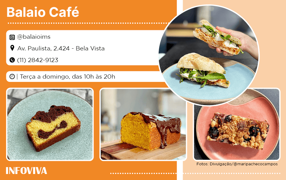 O Balaio Café oferece um ambiente acolhedor, além de um cardápio variado, com pães de fermentação natural, bolos e cafés de altíssima qualidade.
