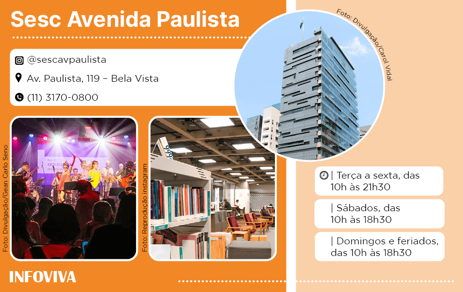 Outro ponto de parada obrigatória é o Sesc Avenida Paulista, que também tem uma programação diversificada, com atividades culturais, esportivas e de lazer para todas as idades.