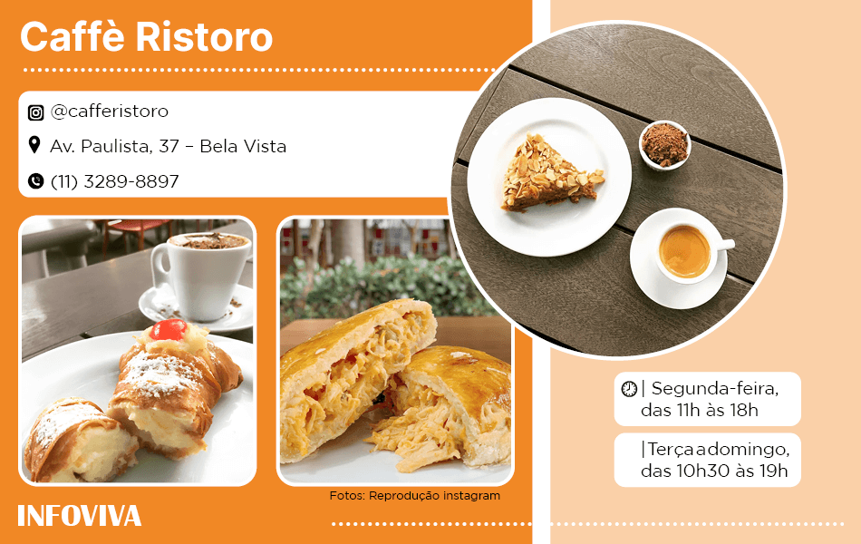Além de cafés, o local também serve bolos, tortas e outros itens de confeitaria, perfeitos para o lanche da tarde.